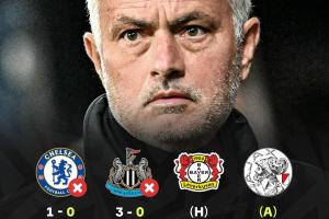 穆里尼奧時隔5年半回歸歐冠,遭遇歐冠兩連敗,先后客負(fù)切爾西和紐卡,兩度重返英倫均失利,丟4球一球未進。