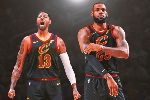 2017年總決賽剛落幕,勒布朗便與數(shù)名騎士隊員在酒店召開球員會議。他們深知需要引進巨星才能抗衡擁有庫里與杜蘭特的勇士,而他們鎖定的目標正是:步行者當家球星保羅-喬治。
