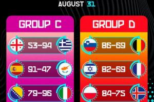 體育資訊09月01日訊 男籃歐錦賽當?shù)貢r間8月31日的6場小組賽全部結(jié)束,詳細賽果如下: