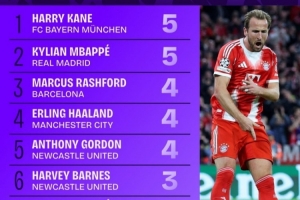體育資訊10月23日訊 本賽季歐冠聯(lián)賽階段已戰(zhàn)罷3輪,Squawka統(tǒng)計(jì)了到目前為止歐冠進(jìn)球數(shù),拜仁前鋒凱恩和皇馬攻擊手姆巴佩都打進(jìn)5球,分列前二位。