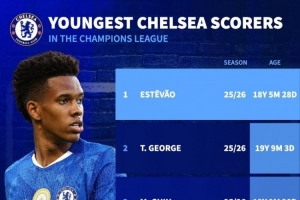 切爾西隊(duì)史歐冠最年輕進(jìn)球者排名: