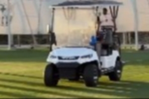 視頻顯示,亞馬爾在巴薩的甘伯體育城訓(xùn)練基地,駕駛著一輛高爾夫球車在訓(xùn)練場上行駛。