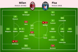 體育資訊10月25日訊 AC米蘭2-2絕平比薩,賽后米體對(duì)米蘭將帥的表現(xiàn)進(jìn)行了打分。
