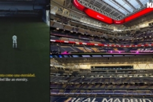 這則宣傳片拍攝于伯納烏球場(chǎng)可伸縮草坪的空間,一線隊(duì)球員貝林厄姆、迪亞斯、阿諾德和馬斯坦托諾出鏡,穿梭于充滿未來感和金屬質(zhì)感的黑暗場(chǎng)景中,象征著俱樂部神話起源于此,歷史在此搏動(dòng)。視頻旁白采用了“神秘而雄心勃勃”的語言,如“偉大要求一切。它從不隱藏。它每天早晨都會(huì)奮起”,并結(jié)合新伯納烏可伸縮頂棚的畫面,配以“像太陽一樣不知疲倦”的臺(tái)詞。
