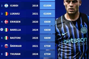 體育資訊10月25日訊 本輪意甲焦點(diǎn)戰(zhàn)將在國(guó)米與那不勒斯展開。德轉(zhuǎn)也盤點(diǎn)了兩隊(duì)隊(duì)史身價(jià)榜,具體如下:
