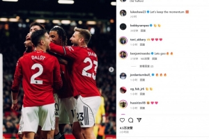 盧克-肖也在賽后通過社媒曬出和隊友的相擁慶祝照,并配文:“讓我們延續(xù)當(dāng)前的勢頭!”