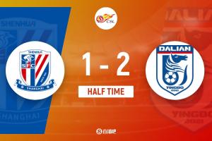 上半場(chǎng)補(bǔ)時(shí)5分鐘,申花1-2大連英博。