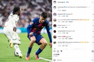 卡馬文加在賽后通過(guò)社媒曬出自己同佩德里的對(duì)位照,并配文:“我的俱樂(lè)部!享受周日吧,馬德里主義者們!”