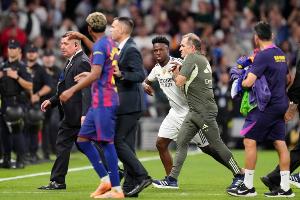 警察介入平息事態(tài),米利唐一度被包圍,舉起了雙手。與此同時(shí),阿隆索沖過(guò)來(lái)將維尼修斯拉回,盧寧此時(shí)是距離巴薩球員最近的皇馬球員。