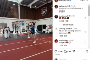 體育資訊10月28日訊 阿森納前鋒哈弗茨更新社媒動態(tài),曬出康復(fù)訓(xùn)練照片。