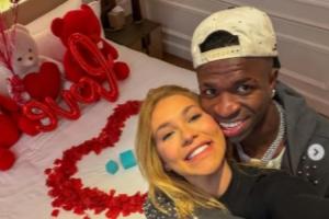 體育資訊10月28日訊 皇馬邊鋒維尼修斯近期陷入國家德比被換下時(shí)情緒爆發(fā)的爭議中,但他在情場上可謂春風(fēng)得意:他在社媒曬出與女友弗吉尼亞的甜蜜合照,為女友營造了浪漫的鮮花氛圍。