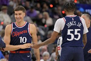 對(duì)此,快船記者Law Murray發(fā)推寫道:“在哈登、萊昂納德、祖巴茨身邊搭配博格丹/巴圖姆、瓊斯/鄧恩的8.5分鐘里,勇士占據(jù)絕對(duì)優(yōu)勢(shì),比分是27-14。之后快船換上了科林斯和大洛?!?/p>