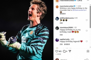 曼聯官方Instagram寫道:“祝門前的那座大山——范德薩生日快樂!”