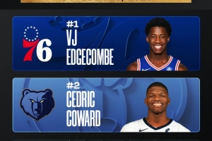 體育資訊10月30日訊 NBA官方公布了最新一期的NBA新秀榜,埃奇庫姆排在第一。而灰熊的錫德里克-科沃德排名第二,迪倫-哈珀排名第三。