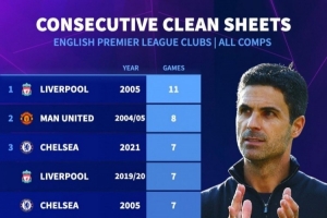 英超球隊(duì)各項(xiàng)賽事最長零封榜:(*當(dāng)前仍未終結(jié))