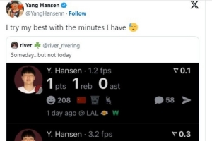 某網(wǎng)友在社媒發(fā)文表示賽季至今的5場比賽小楊得分依次是2分、2分、2分、1分、2分,并配文寫道:“我知道他會打出來,但不是現(xiàn)在!”。假冒楊瀚森賬號則在社媒上回復道:“我會在能獲得的時間里用盡全力。”這一回復被“Sporting News”的編輯誤以為是楊瀚森本尊于是他們撰寫了新聞并發(fā)出(如下所示)。