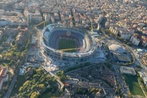 航拍圖像顯示,第三層看臺(tái)是改進(jìn)空間最大的部分。在第二層和第三層看臺(tái)之間將設(shè)置VIP包廂環(huán)廊,這是新諾坎普球場的重大亮點(diǎn)之一。