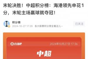本賽季海港領(lǐng)先申花2分,末輪只需要打平就奪冠。