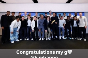 貝林厄姆也通過社媒曬出了皇馬全隊同手持金靴獎杯姆巴佩的合影,并配文:“祝賀我的兄弟@姆巴佩”。