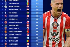 14、麥金(蘇格蘭,維拉):81場(chǎng)