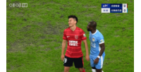 比賽第13分鐘,蓉城球員甘超對(duì)河南外援阿奇姆彭做出了閉嘴的手勢(shì)。