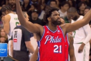 GIF-恩比德打成2+1煽動主場球迷氣氛