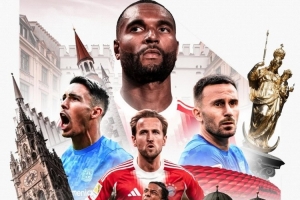 拜仁官方更新社媒動(dòng)態(tài),發(fā)布了為此役制作的海報(bào),凱恩、奧利塞、若納坦-塔出鏡。