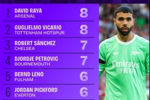 體育資訊8月28日訊 本賽季英超已經(jīng)進(jìn)行兩輪比賽,阿森納的拉亞和熱刺的維卡里奧以8次并列撲救榜榜首,而且兩人把守的球門迄今為止還未丟球。