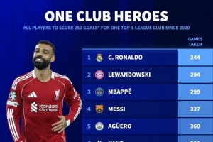 體育資訊11月2日訊 英超第10輪比賽,薩拉赫破門,利物浦主場2-0擊敗維拉。薩拉赫各賽事為利物浦攻入250球,德國轉(zhuǎn)會(huì)市場統(tǒng)計(jì)了本世紀(jì)五大聯(lián)賽球員為單一俱樂部攻入250球所用場次,并列出榜單。