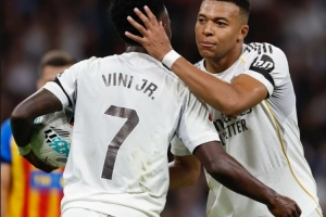 本場(chǎng)比賽上半場(chǎng)皇馬兩度獲得點(diǎn)球機(jī)會(huì),姆巴佩先是主罰命中,第二球維尼修斯主罰被撲出。賽后維尼修斯也在社媒曬出兩人擁抱合照,配文寫道:“對(duì)你來(lái)說(shuō)這很容易??”