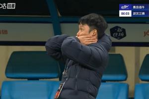 體育資訊11月02日訊 中超第29輪,青島海牛vs武漢三鎮(zhèn),比賽第87分鐘,武漢三鎮(zhèn)定位球開出,賀慣小禁區(qū)線上無人防守踢偏,場(chǎng)邊的鄧卓翔都驚出了表情包。