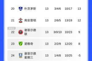 體育資訊11月02日訊 英冠目前已經(jīng)進行了13輪,目前蘭帕德執(zhí)教的考文垂積28分,領(lǐng)跑積分榜。