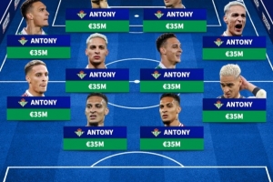 體育資訊9月2日訊 五大聯(lián)賽夏窗關閉,德轉(zhuǎn)整活安東尼,貝蒂斯全員安東尼。