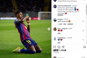 拉什福德社媒曬照慶祝勝利,配文:“主場(chǎng)勝利,氣氛絕佳。感謝大家的支持,蒂埃雷,正如我所承諾,這粒進(jìn)球獻(xiàn)給你?!?/p>