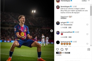 費(fèi)爾明社媒曬出激情慶祝的照片,配文:“這就是前進(jìn)的方向!非常高興能為這場(chǎng)漂亮的團(tuán)隊(duì)勝利貢獻(xiàn)力量!繼續(xù)加油!”