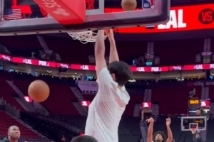 賽前,開拓者跟隊記者@yovic曬出視頻,楊瀚森與助教羅尼-伯勒爾連續(xù)對抗熱身,籃下終結(jié)連續(xù)暴扣,勾手也連續(xù)命中。