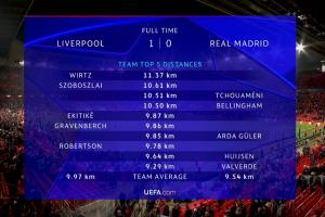 體育資訊11月05日訊 利物浦本輪歐冠1-0擊敗皇馬。賽后官方跑動(dòng)數(shù)據(jù)出爐。