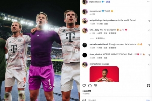 體育資訊11月5日訊 拜仁在本輪歐冠焦點(diǎn)戰(zhàn)2-1力克巴黎,諾伊爾在賽后通過社媒慶祝勝利。