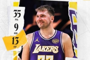 賽后湖人官方發(fā)布東契奇數(shù)據(jù)海報(bào):“對(duì)于盧卡來說又一個(gè)表現(xiàn)出色的夜晚?!?/p>