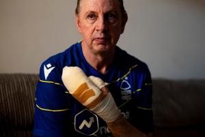61歲的斯蒂芬·克里安是一位諾丁漢森林球迷,上周六在一輛列車上,32歲的安東尼·威廉姆斯持刀對列車乘客發(fā)動了襲擊,克里安挺身而出,赤手空拳與歹徒進行了搏斗??死锇脖硎?,當時自己完全沒想這么做的危險,歹徒一邊朝他連捅七刀,一邊喊道:“你想死嗎?”。