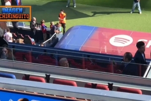 巴薩今日在諾坎普球場進行公開訓(xùn)練,俱樂部主席拉波爾塔來到現(xiàn)場。