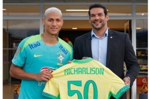 體育資訊9月3日訊 理查利森獲贈為巴西隊出戰(zhàn)50場里程碑紀念球衣,他在社交媒體上發(fā)表感想。