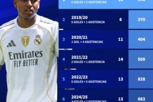 體育資訊11月8日訊 盡管皇馬主帥阿隆索多次在新聞發(fā)布會上強調(diào)羅德里戈是球隊陣中重要一員,但數(shù)據(jù)卻顯示了完全不同的情況。在進(jìn)攻端,只有恩德里克和貢薩洛-加西亞比他出場時間更少。事實上,這是他加盟皇馬以來前15場比賽出場時間最少的一個賽季。