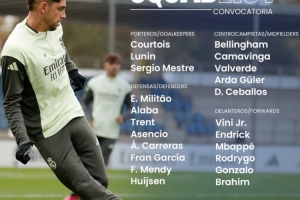 體育資訊11月8日訊 本輪西甲皇馬將在客場對陣巴列卡諾,球隊(duì)官方也公布了本場大名單,瓊阿梅尼缺席,具體如下: