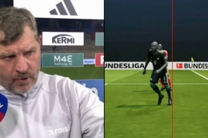賽后,柏林聯(lián)主帥鮑姆加特向記者抱怨:“第一個球應(yīng)該算作進(jìn)球。僅僅因為5毫米的差距就判越位——我們這里談及的真的是5毫米——有些人簡直是瘋了。”