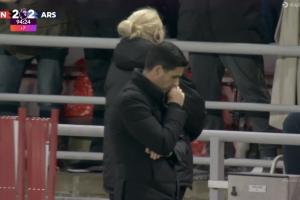 體育資訊11月9日訊?阿森納本輪2-2戰(zhàn)平桑德蘭,補(bǔ)時(shí)桑德蘭絕平,場(chǎng)邊鏡頭給到了阿爾特塔。