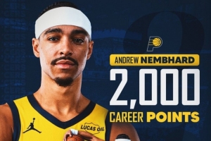至此,內(nèi)姆哈德常規(guī)賽生涯總得分突破2000大關。