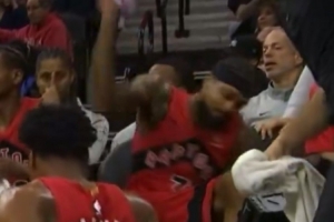 “很多人都認(rèn)為他應(yīng)該站起來道歉。我理解他的沮喪,他在比賽中摔倒得很尷尬,而且那是一場艱難的比賽,他們有很多失誤,最終沒能贏得比賽。但我不認(rèn)為這是正確的回應(yīng)方式。有人說他像三歲小孩一樣,確實(shí)如此,這種事情經(jīng)常發(fā)生在有小孩的家庭里。但我認(rèn)為這不是合適的反應(yīng)。他應(yīng)該對此道歉,但他沒有這樣做,沒有任何反應(yīng)。我不知道他當(dāng)時是怎么想的,但作為一個普通人,我認(rèn)為他應(yīng)該有所表示。他不應(yīng)該坐在那里看著大家清理,尤其是當(dāng)水濺到隊(duì)友臉上時。他應(yīng)該幫助清理,而不是讓別人的生活變得更加困難。也許這是因?yàn)樗浅壐缓?,覺得這些人理應(yīng)為他服務(wù)。但我們不應(yīng)該輕易下結(jié)論。他看起來非常沮喪,可能只是心情不好而已?!盌onnie Freeman表示。