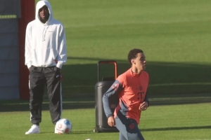 值得一提的是,好友阿方索·戴維斯(25歲/7個半月前右膝十字韌帶撕裂)在訓練課開始后不久便身著休閑服來到訓練場。這位加拿大國腳隨著穆西亞拉用手機連放的XXL音響中說唱樂節(jié)奏舞動,并為正在進行恢復訓練的伙伴歡呼助威。這位左后衛(wèi)情緒高漲,強勁的節(jié)拍響徹拜仁訓練基地。