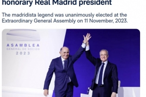 體育資訊11月11日訊 皇馬官網(wǎng)消息,2023年11月11日,何塞-馬丁內(nèi)斯-皮里在皇家馬德里城籃球館舉行的特別全體大會上,被一致推選為俱樂部的榮譽(yù)主席。這一任命至今已有兩年。